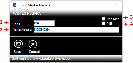 3. Maka akan tampil jendela Input Negara, isikan data sebagai berikut.
