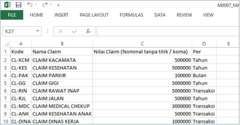 2. Buka template dengan nama M0006_MASTER CLAIM.xls, nama template ini tidak boleh diubah.