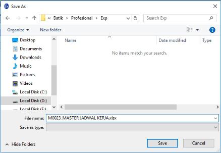 2. Maka muncul jendela untuk menyimpan file export, pilih folder kemudian isi nama file dan extention file kemudian klik Save untuk menyimpan.