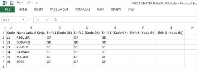 2. Buka template dengan nama M0015_MASTER JADWAL KERJA.xls, nama template ini tidak boleh diubah.