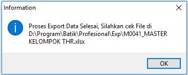 3. Setelah proses export selesai maka akan muncul pemberitahuan sebagai berikut. Klik OK untuk menutup pemberitahuan tersebut.