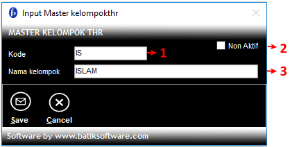 - Data Kelompok THR tidak boleh dihapus atau diubah kodenya jika sudah digunakan menu lain.