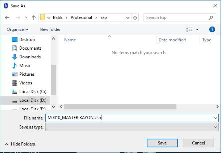2. Maka muncul jendela untuk menyimpan file export, pilih folder kemudian isi nama file dan extention file kemudian klik Save untuk menyimpan.