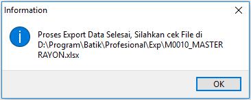 3. Setelah proses export selesai maka akan muncul pemberitahuan sebagai berikut. Klik OK untuk menutup pemberitahuan tersebut.