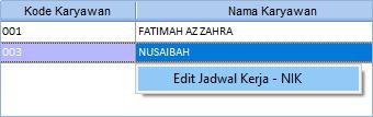 1. Klik kanan tampilan management shift, kemudian pilih Edit Jadwal Kerja - NIK.