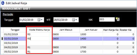 3. Setelah semua parameter diisi, klik tombol Open untuk memproses data management shift, maka akan muncul data jadwal kerja selama 1 bulan.