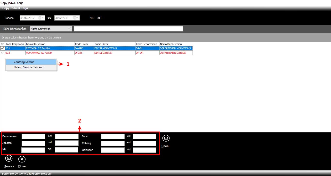 2 | NIK/Divisi/Departemen | Klik 2x untuk mengambil kode NIK/Divisi/Departemen yang akan ditampilkan |