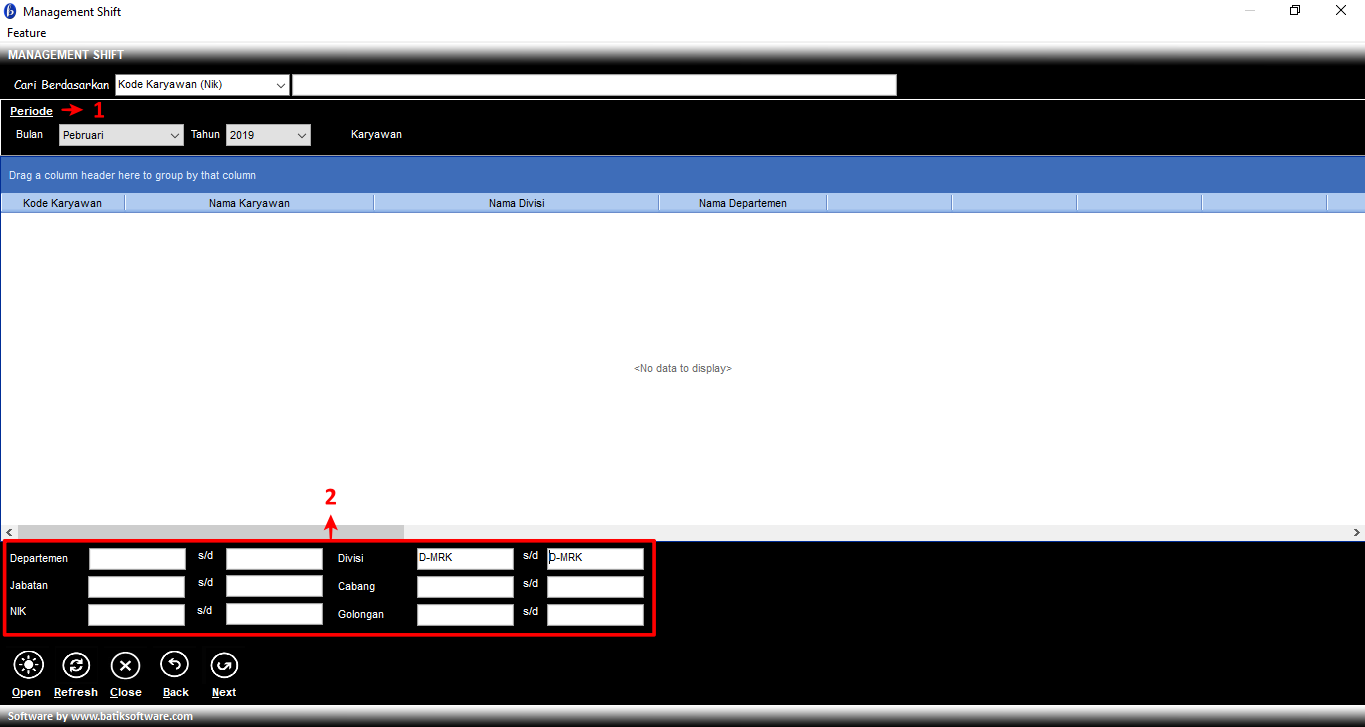 1 | Periode | Input parameter periode yang akan dilihat management shiftnya |