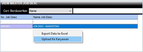 1. Klik kanan pada jendela View Master Job Desc, kemudia pilih Upload ke Karyawan.