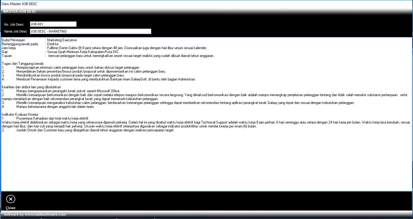 1. Buka Modul Master >> Karyawan >> Job Desc.