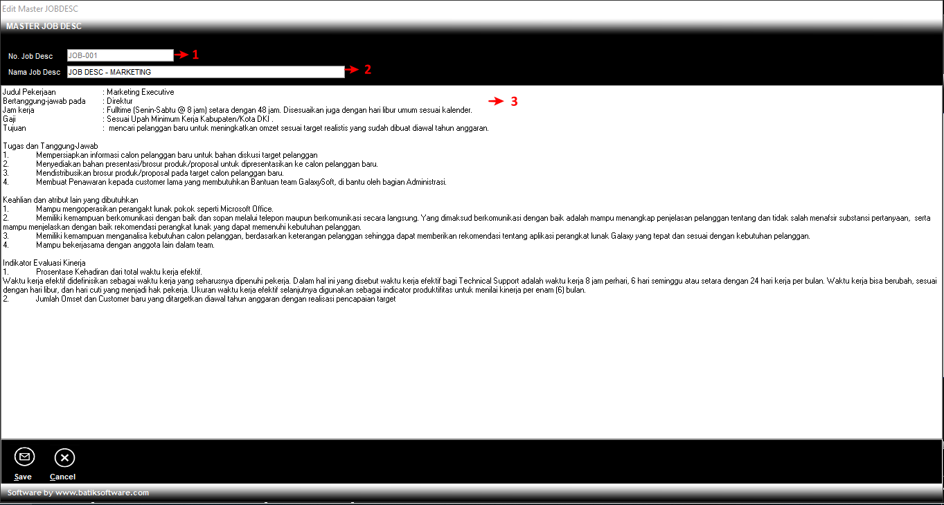 3. Maka akan tampil jendela Input data Job Desc, maka muncul jendela Input Master Job Desc.