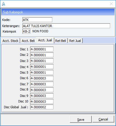 Klik 2x Diisi akun untuk menampung nilai diskon nota penjualan. |
