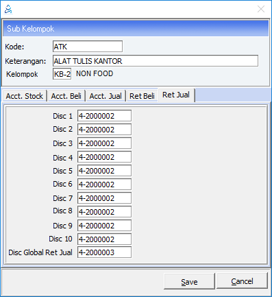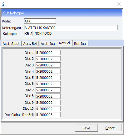 5 | Ret Jual | Diisi akun untuk menampung nilai retur penjualan barang. |