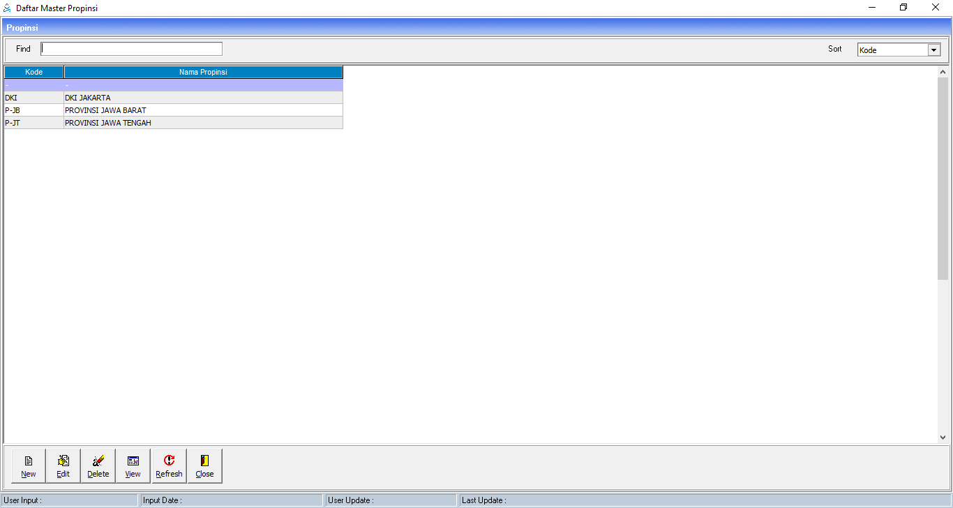 Propinsi merupakan hierarki paling besar diantara data regional lain, nantinya data propinsi ini akan ditarik ke menu Kabupaten.