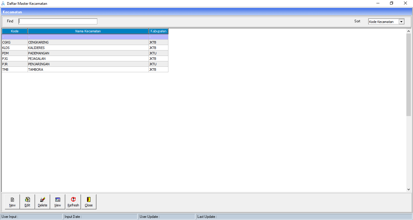 Kecamatan merupakan hierarki regional setelah kabupaten, nantinya data kecamatan ini akan dipakai pada menu kelurahan.