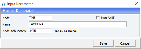 1 | Kode | Diisi kode Kecamatan, bisa berupa huruf, angka maupun simbol max 10 karakter. |