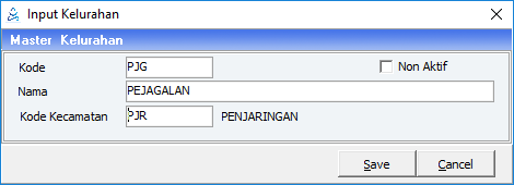 4 | Kode Kecamatan | Klik 2x untuk mengambil kode kelurahan. |