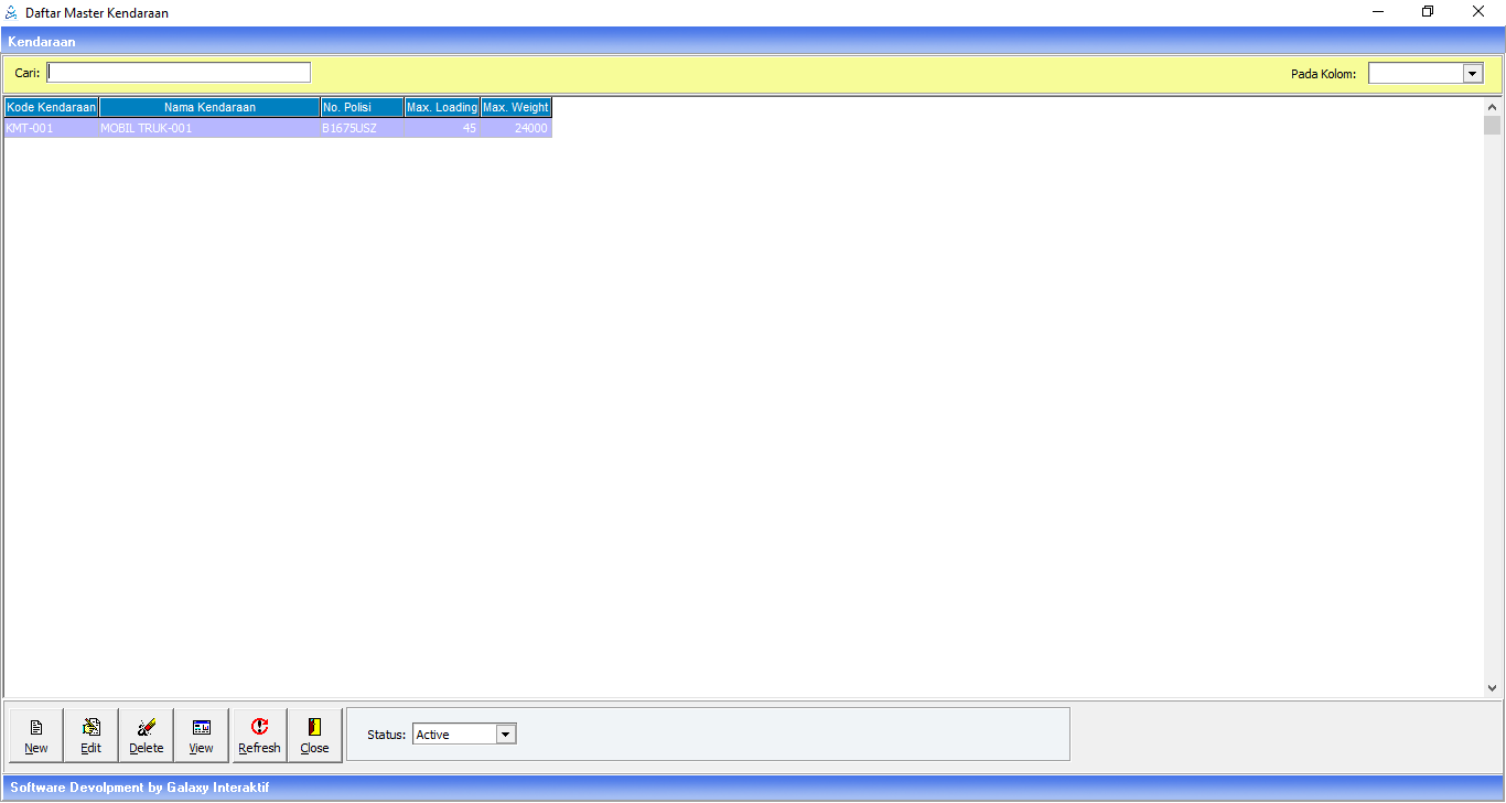 Menu ini digunakan untuk menginput data kendaraan yang biasanya dipakai untuk packing barang yang akan dikirim ke customer.