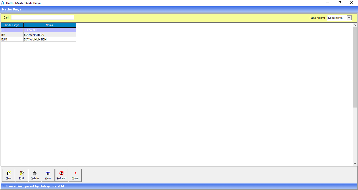 2. Maka akan muncul jendela Master Biaya, kemudian klik View.