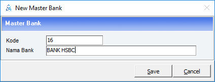 Master Bank digunakan untuk menampung daftar Bank yang ada, nantinya master ini akan digunakan pada saat user membuat buku bank dan giro pada modul Kasir.