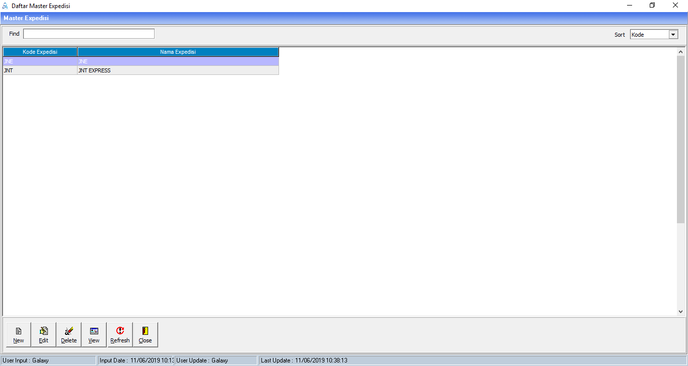 1. Data Ekspedisi tidak boleh dihapus atau diubah kodenya jika sudah dipakai pada menu lain.