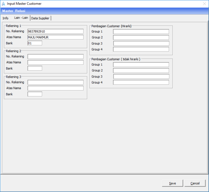 Pembagian Customer | Diisi pembagian customer, hierarki dan tidak hierarki. |