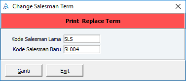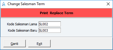 Menu Ganti Salesman ini digunakan pada saat adanya pergantian salesman, baik itu salesman baru ke salesman lama ataupun salesman lama saling bertukar customer. Berikut lengkapnya :