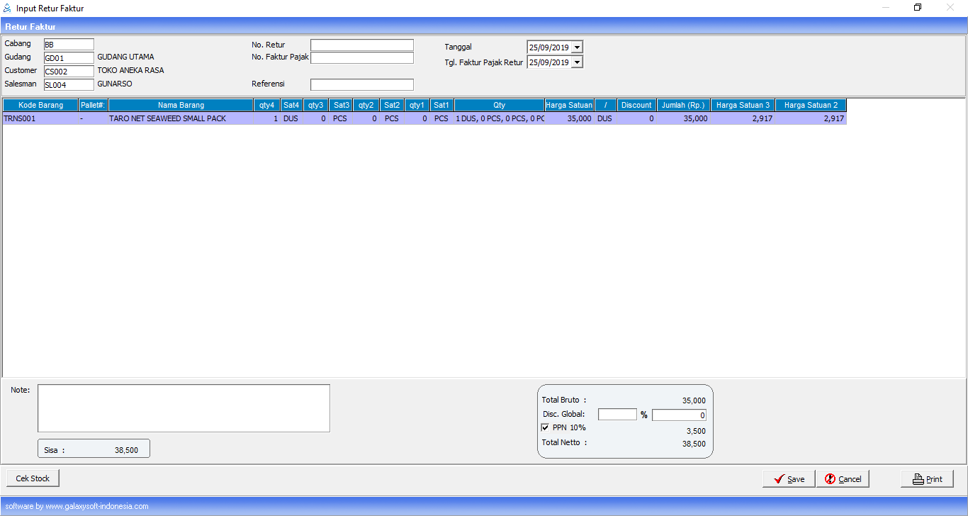 Disc.Global | Diisi presentase disc.global jika akan menambahkan diskon nota retur |