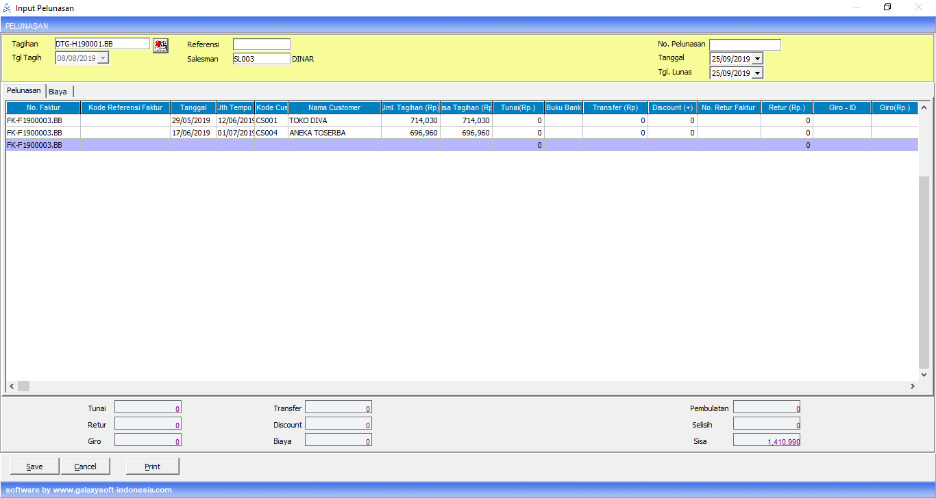 Sisa Bayar | Akan tampil jika nilai pelunasan lebih kecil dari jumlah piutang |