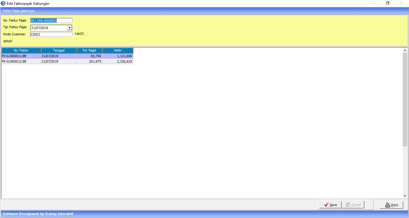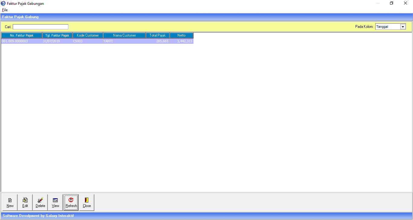 No.Faktur | Klik 2x untuk mengambil nomor faktur penjualan yang nomor faktur pajaknya akan digabungkan |