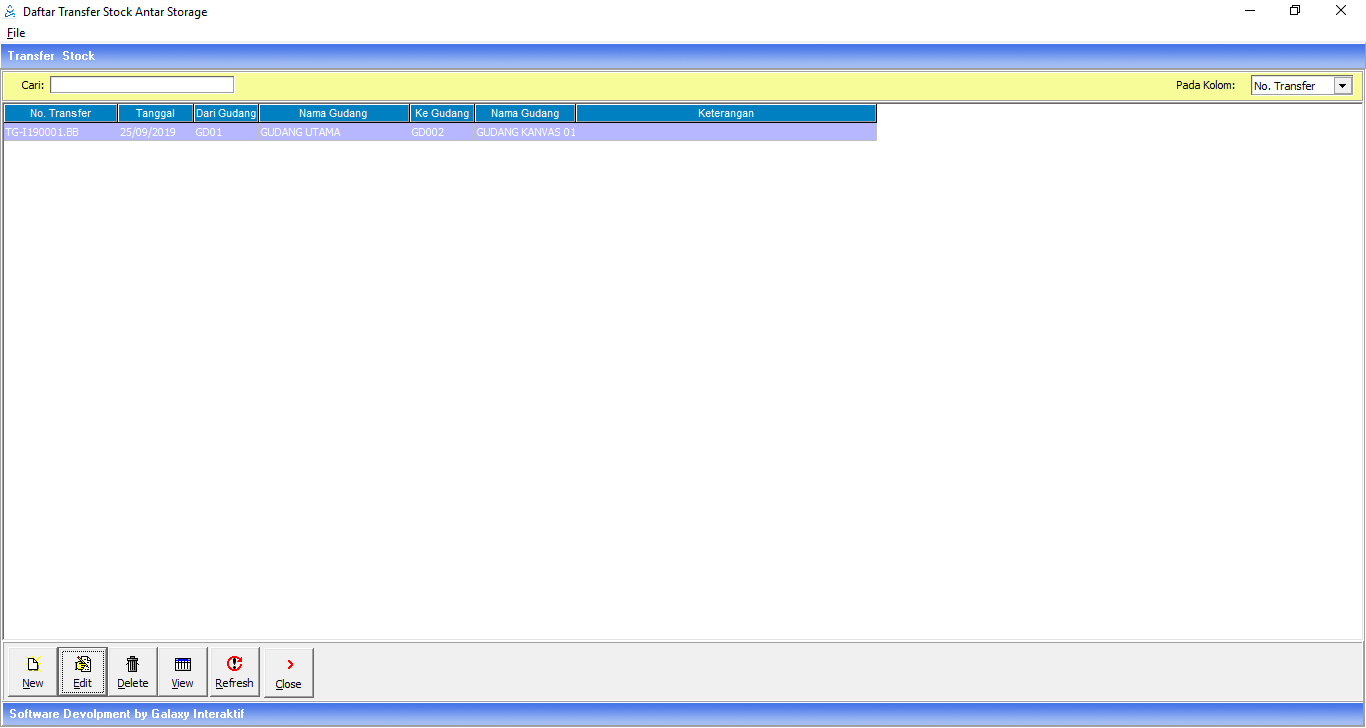 4. Lalu Klik save. Maka akan muncul jendela Master Transfer Antarlokasi.