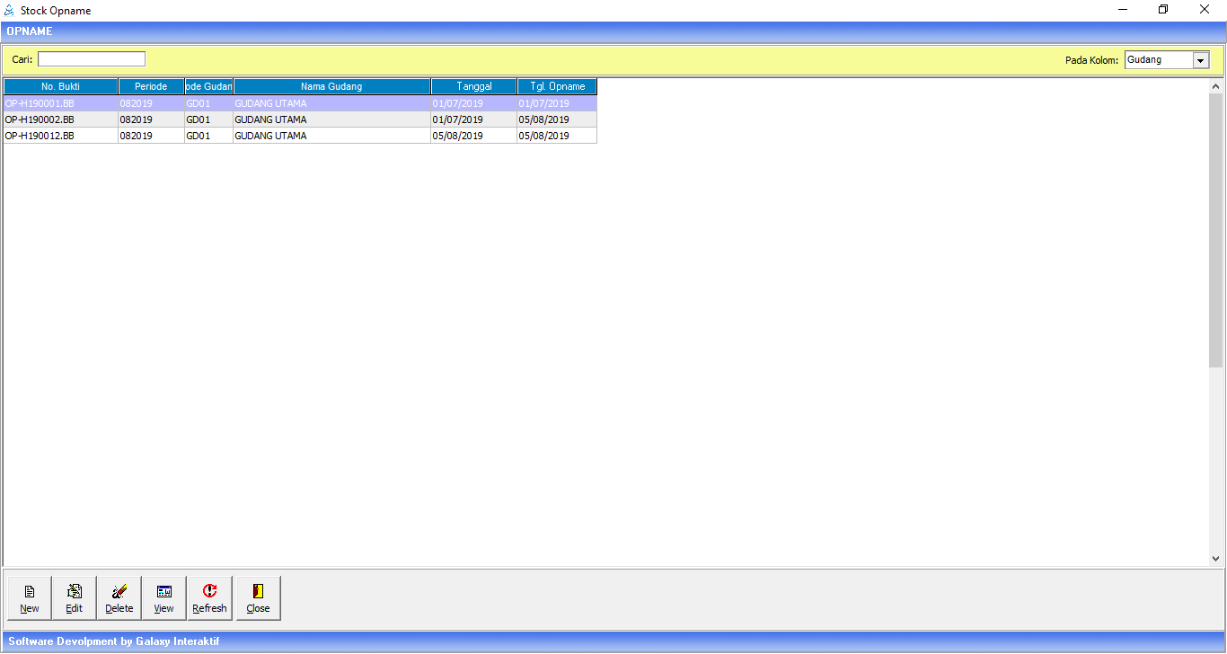 Gudang | Klik 2x untuk mengambil kode gudang yang akan diopname |