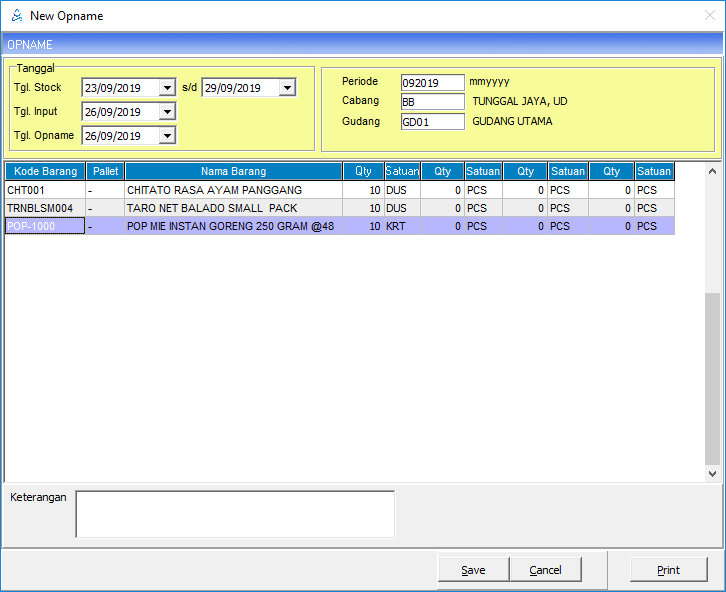 4. Lalu Klik save. Maka akan muncul jendela Master Stock Opname Fisik.