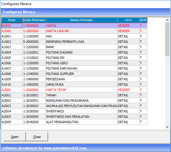 Menu Configurasi Neraca terdapat pada Modul Accounting >> Configurasi >> Configurasi Neraca.