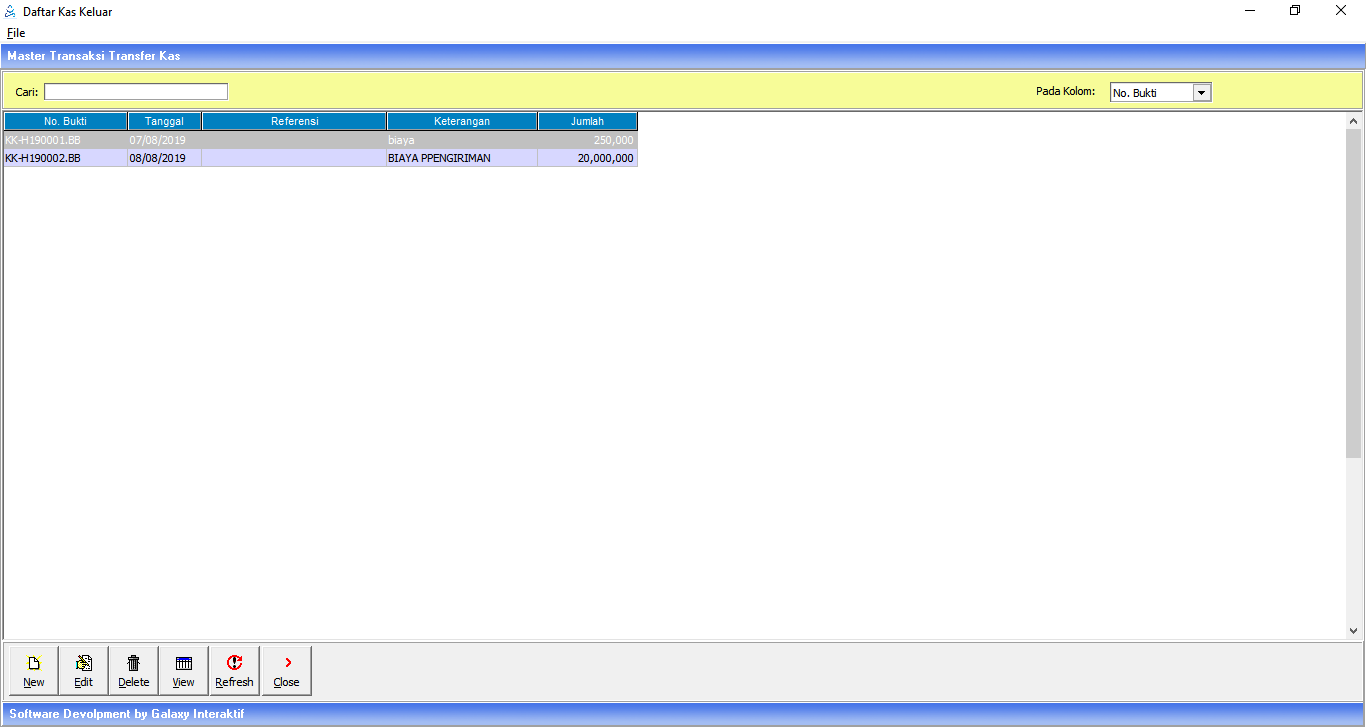 No.TransKas | Muncul otomatis setalah data ini disimpan |