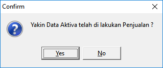 2. Sehingga tampil jendela Master Aktiva, klik tombol Jual terhadap aktiva tersebut sehingga muncul jendela konfirmasi.