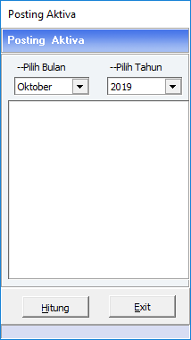 Posting aktiva ini digunakan untuk menghitung ulang jumlah penyusutan aktiva pada periode yang diposting. Penyusutan ini nantinya akan terkait dengan akun-akun yang sudah dimasukkan ke dalam masing-masing Master Aktiva (Akun Aktiva Tetap, Akumulasi Penyusutan, dan Beban Penyusutan).