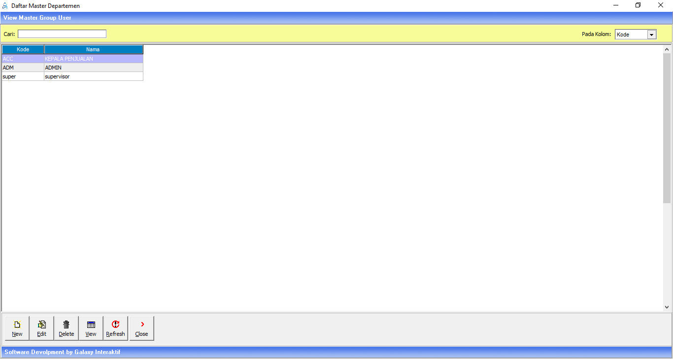 Menu Group User ini berfungsi untuk mengelola group user yang dapat mengakses program CDS, melalui menu ini kita bisa mengelola settingan hak akses tiap user sesuai dengan group nya.