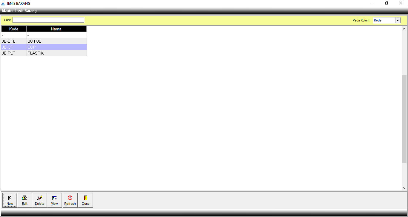 Menu ini digunakan untuk mengelompokkan barang berdasarkan jenis barang.