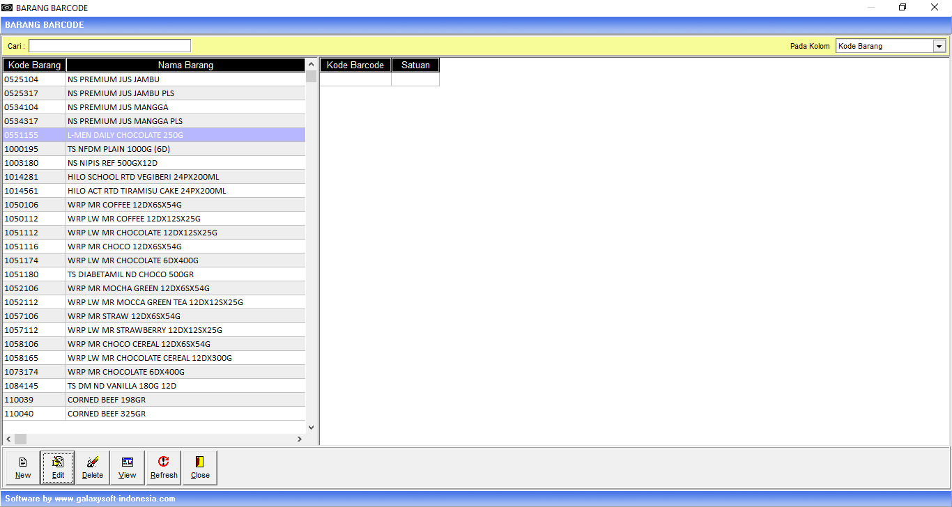 2. Maka akan muncul jendela Master  Barcode Barang, kemudian klik View.