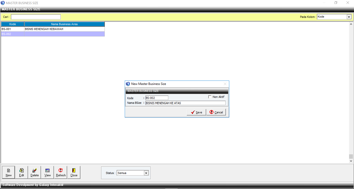 Menu ini digunakan untuk menginput data-data area dimana customer berada.