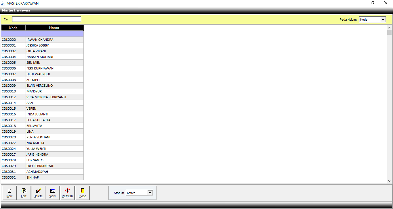 2. Maka akan muncul jendela Master Karyawan, kemudian klik View.