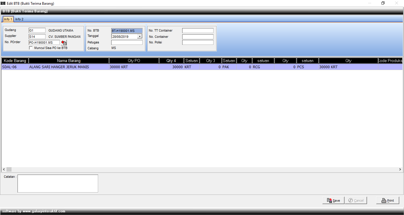 No. BTB | Akan muncul otomatis apabila telah di Save |