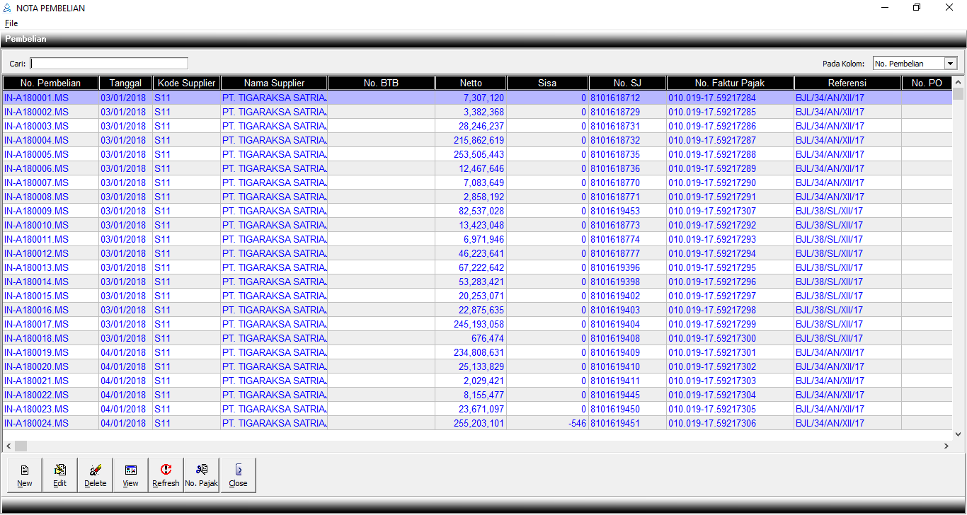 2. Kemudian klik New pada jendela Master Nota Pembelian