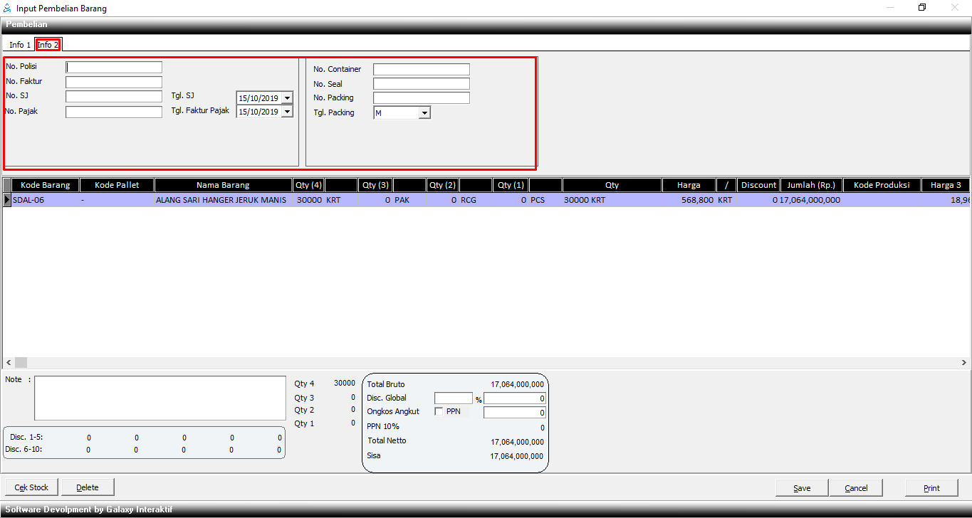 No. Faktur Diisi nomor faktur dari supplier.