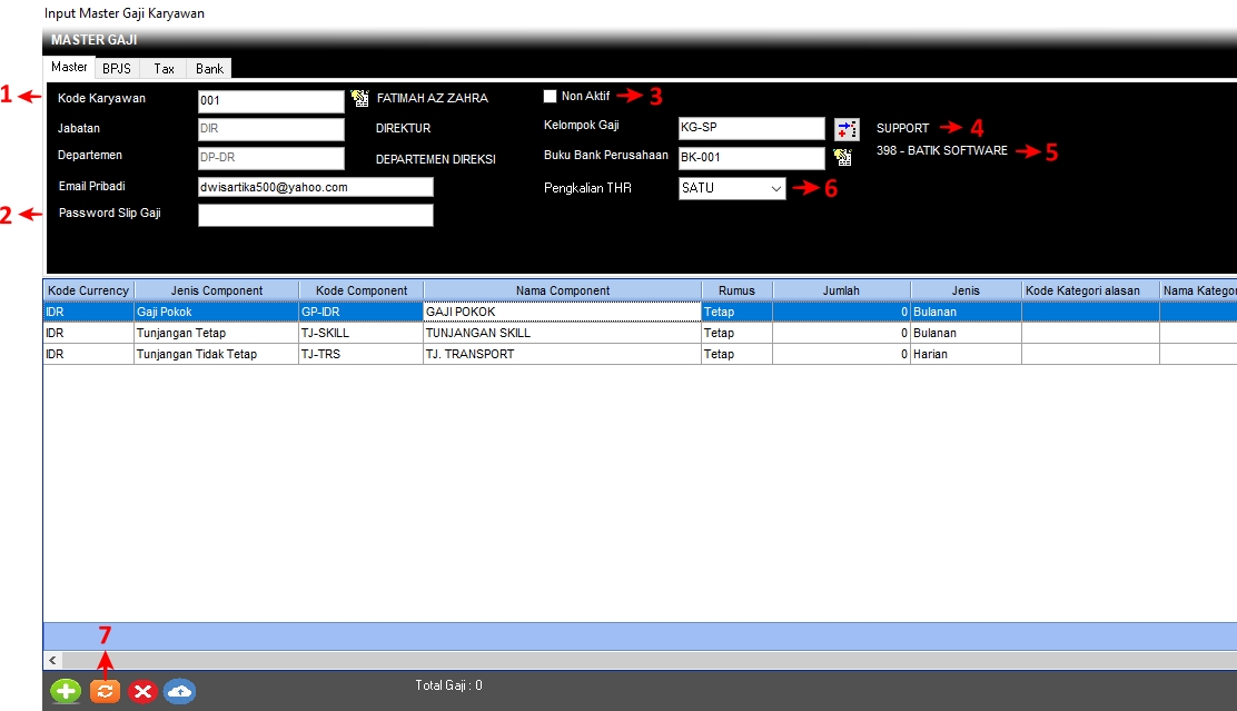 3 | Non Aktif | Klik untuk menonaktifkan master gaji karyawan |