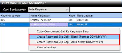 Batik Profesional memiliki 2 tipe create password, yakni Create Password Slip Gaji - Blank dan Create Password Slip Gaji - All.