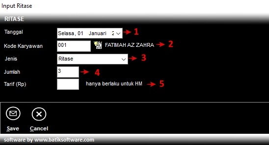 2 Kode Karyawan Klik 2x untuk mengambil kode karyawan yang akan dimasukkan jumlah ritasenya