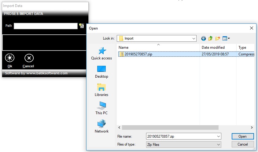 Setelah data dari cabang lain diexport, selanjutnya data tersebut dikirim ke cabang lain/pusat untuk diimport. Letakkan file zip tersebut pada folder Import.
