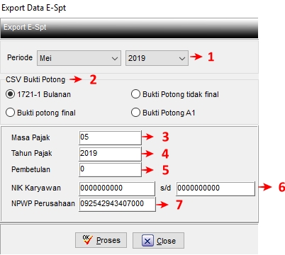 Menu ini digunakan untuk mengexport data ESPT Bukti Potong baik berupa Tidak Final, Final, A1, Pemotongan Pajak Bulanan. Nantinya data ini akan dipakai untuk diimport ke program E-SPT. Adanya ini, mempermudah Anda agar tidak input satu per satu ke program E-SPT.